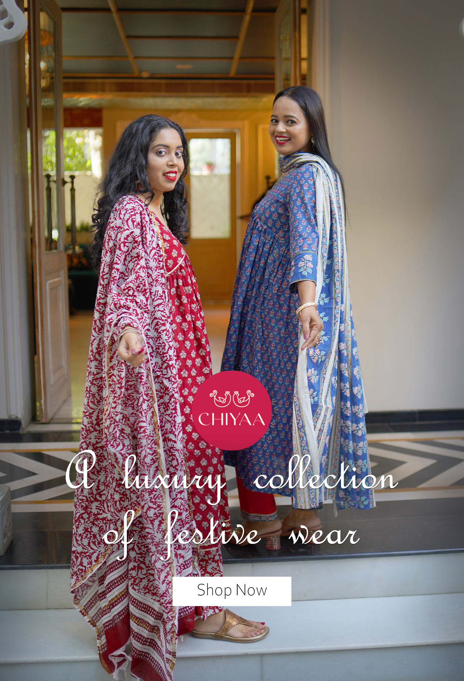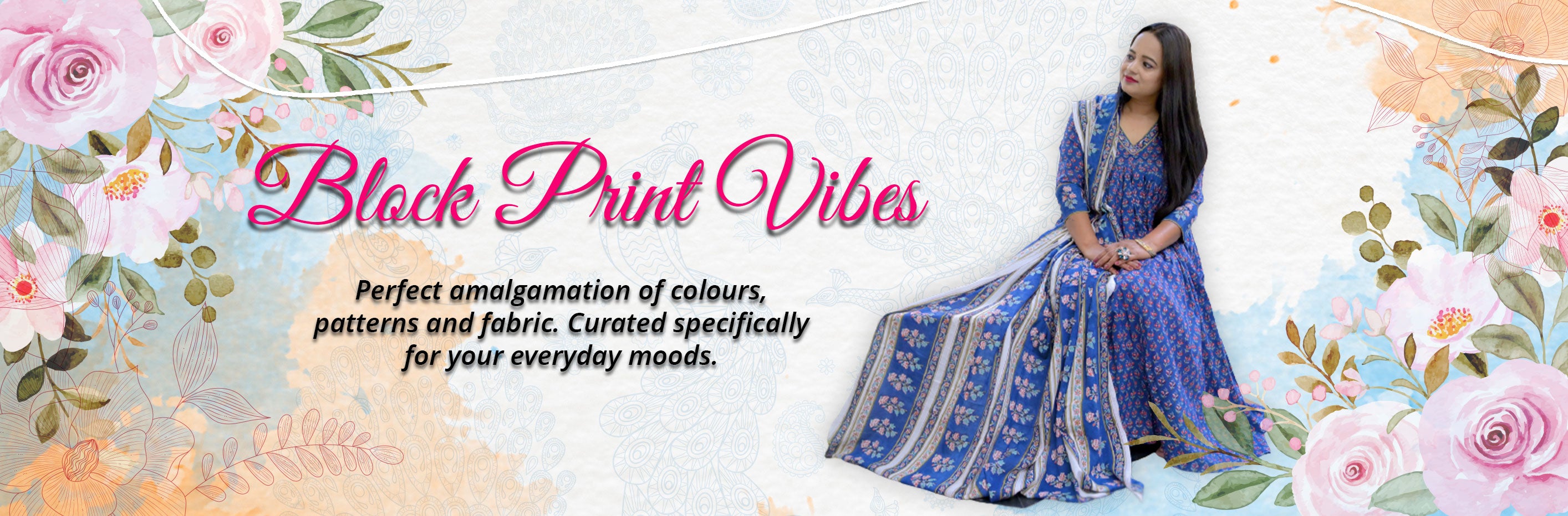 Falak Blue Handblock Mulmul Kurta-Pant Set