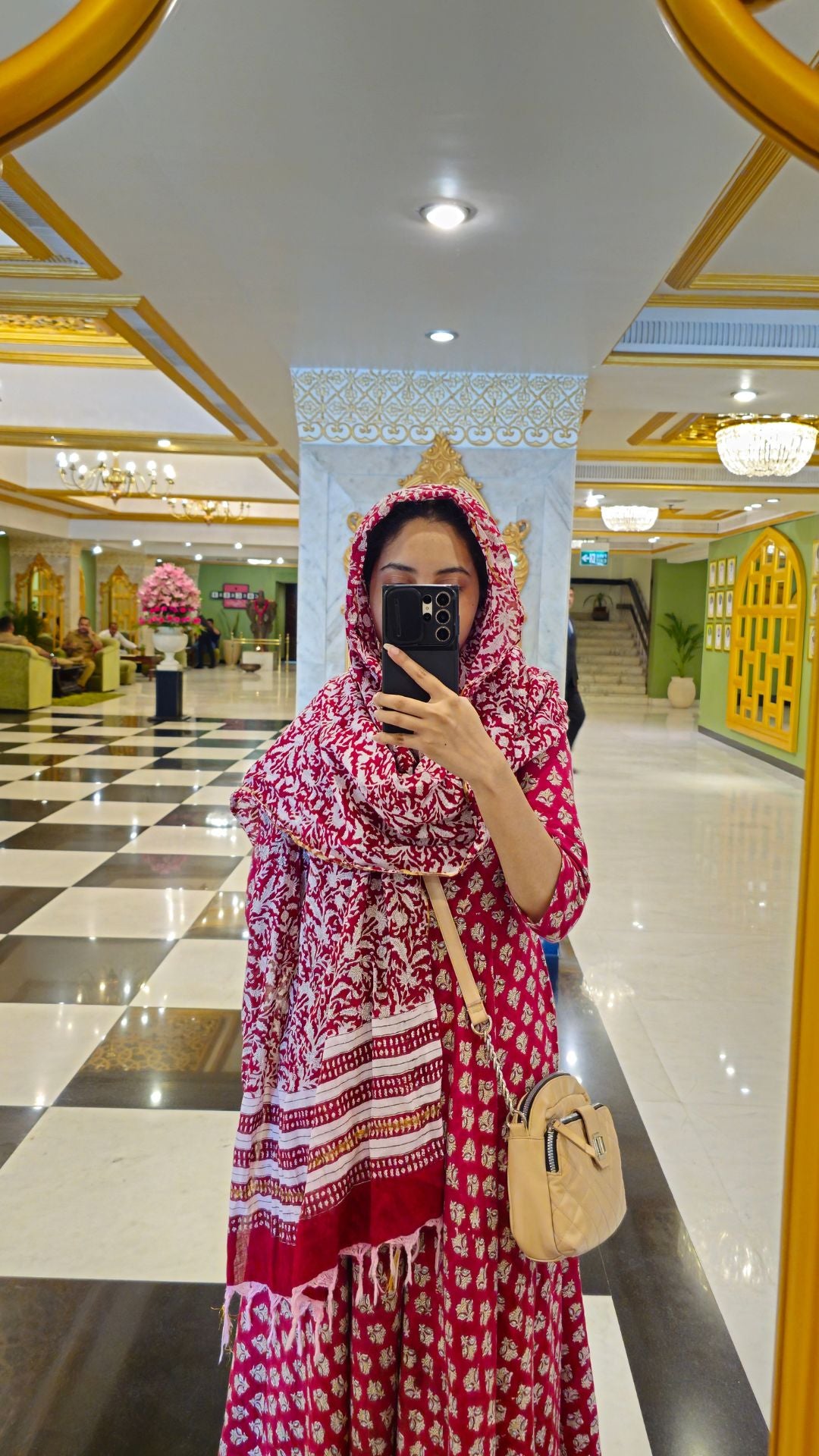 Gulbaano Red Handblock Flared Suit Set