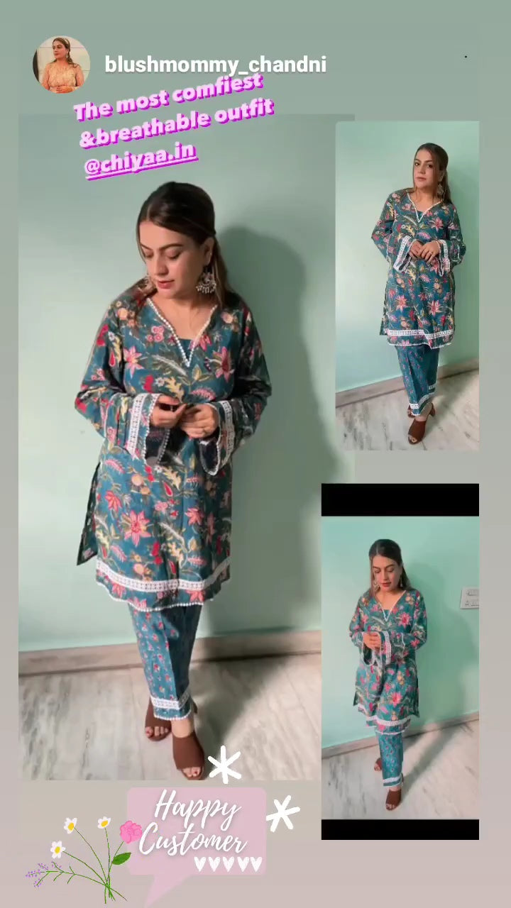 Masakali Handblock Mulmul Kurta-Pant Set
